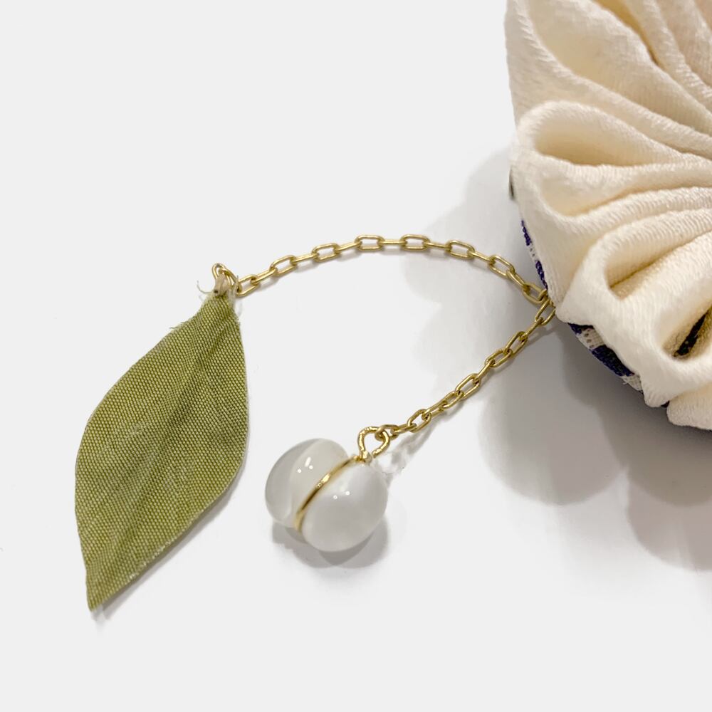 tadasの洋服に使われている着物生地を花びら ひとひらに使って白い絹でお花を仕立てました。