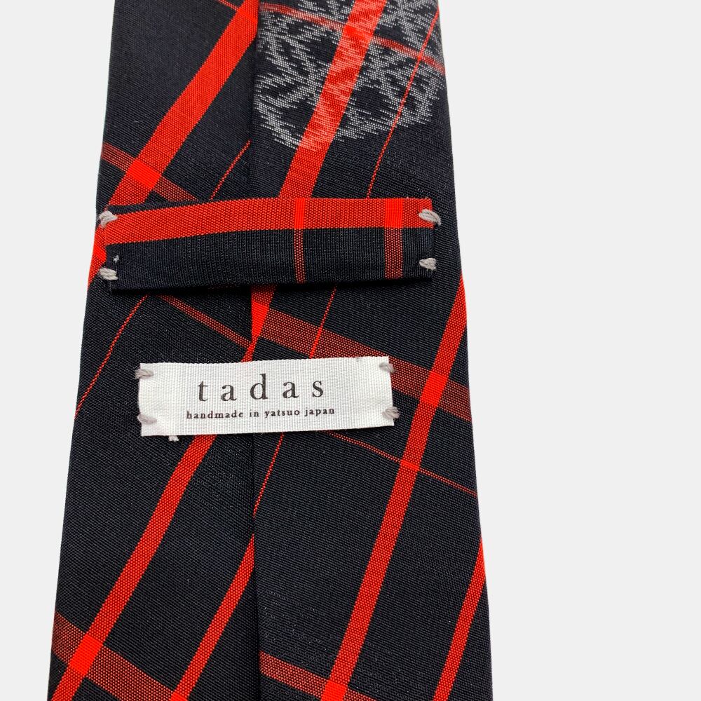 [tadas]解いた着物の生地を使い、一本ずつ丁寧に手縫いにてネクタイ、チーフを作りました。