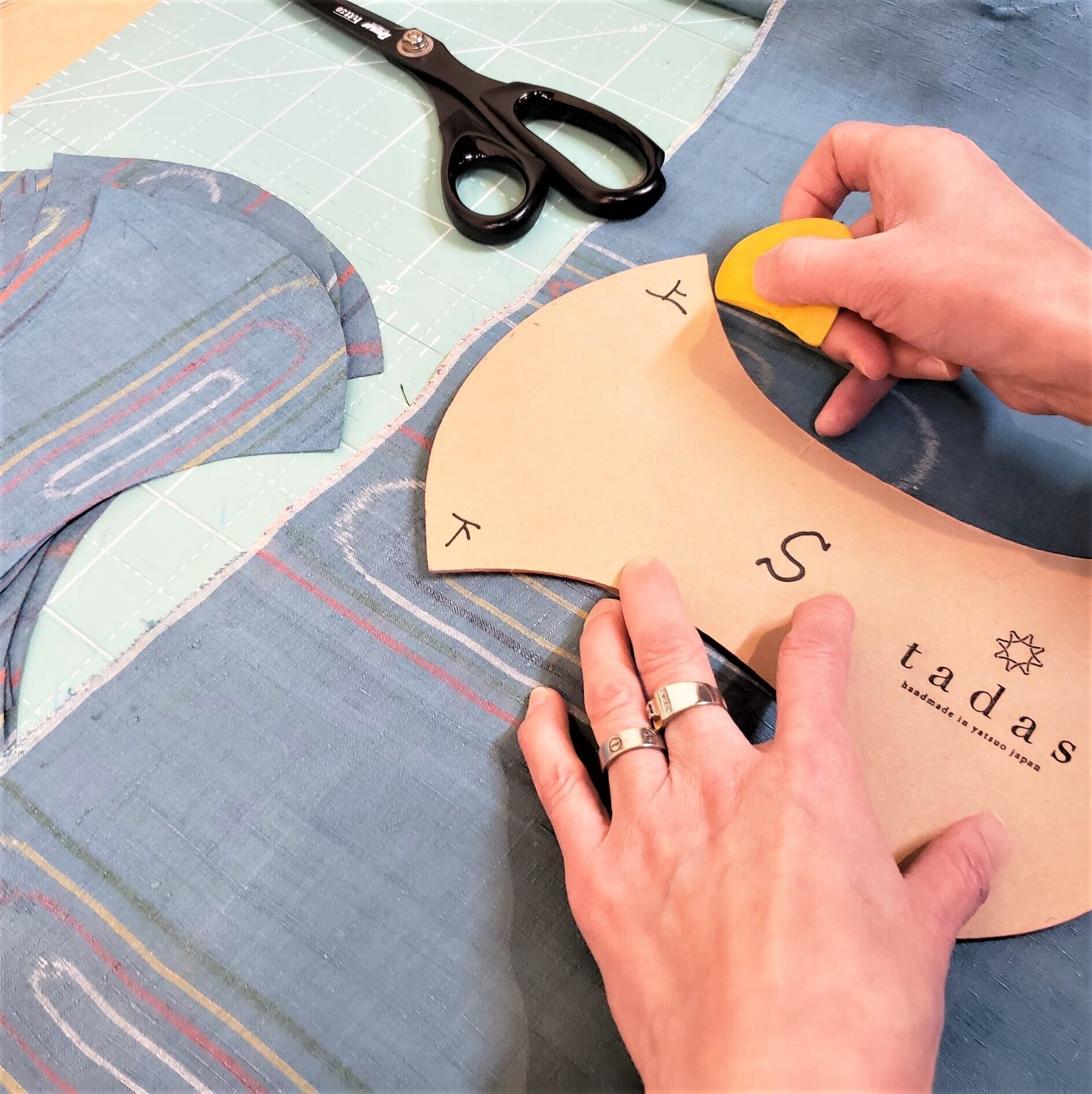 tadasの商品は、一点一点着物を解き、丁寧に手作りしています。