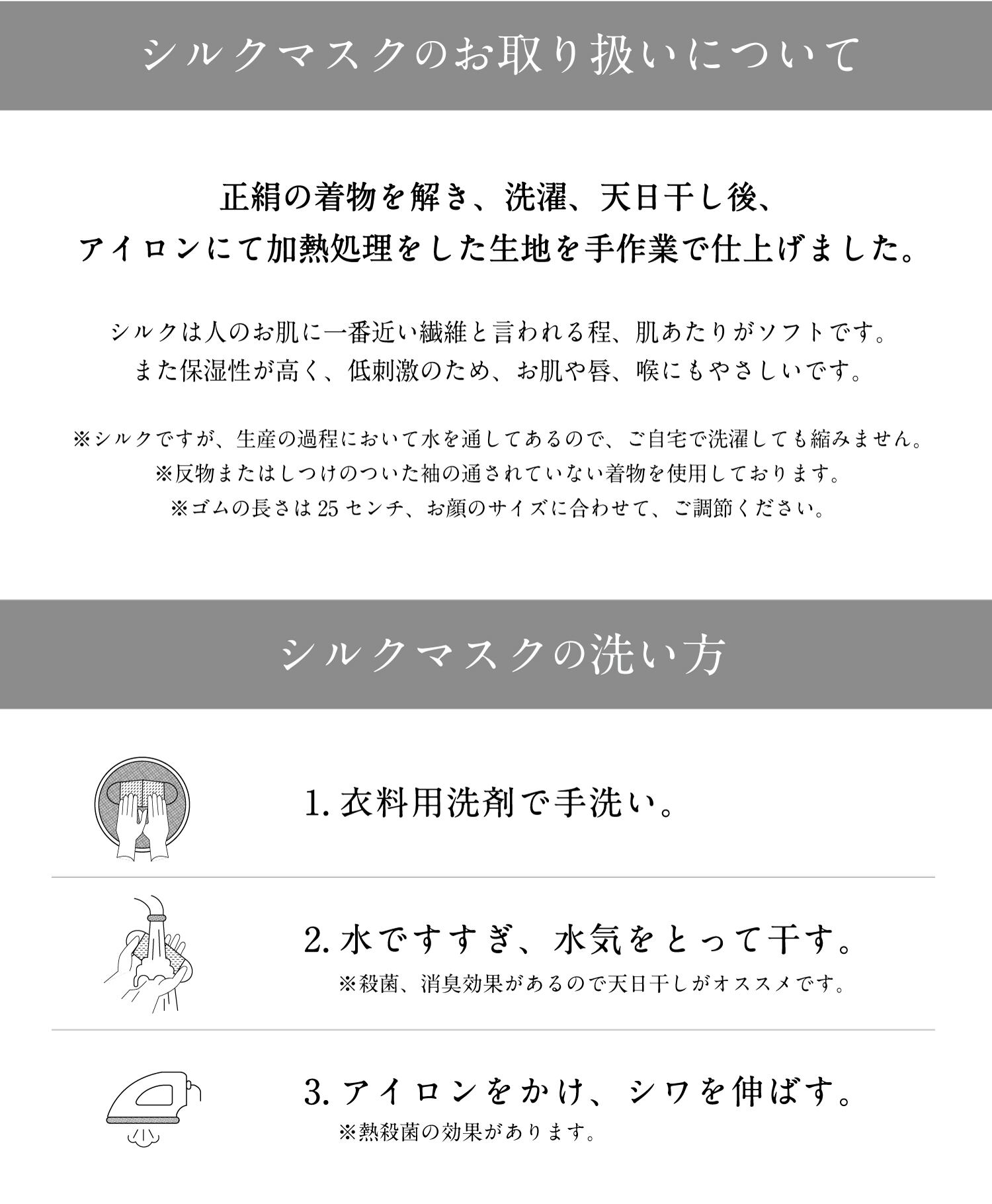 ※シルクですが、生産の過程において水を通してあるので、ご自宅で洗濯しても縮みません。